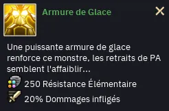 - Les monstres ont tous une armure de glace qui les renforce grandement en résistances : +250 de résistances dans tous les éléments