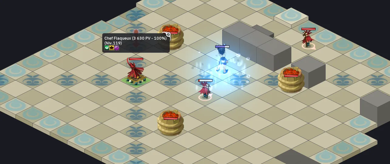 - Les monstres peuvent vous infliger des niveaux de “congélation” cumulable : vous perdrez alors des PA et des PM tant que vous ne vous serez pas infligé d’attaques feu sur vos personages