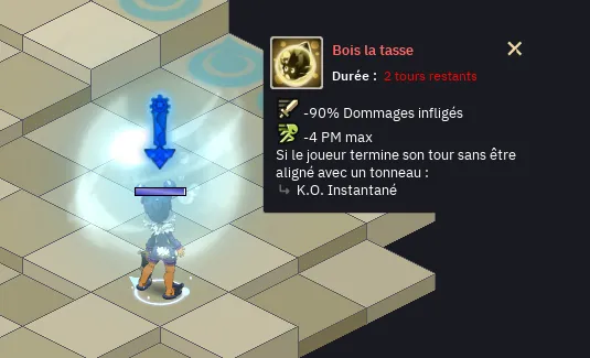 - Cependant si vous terminez votre tour en ligne d’un tonneau sans l’état « bulle » vous subirez de très gros dégâts : évitez