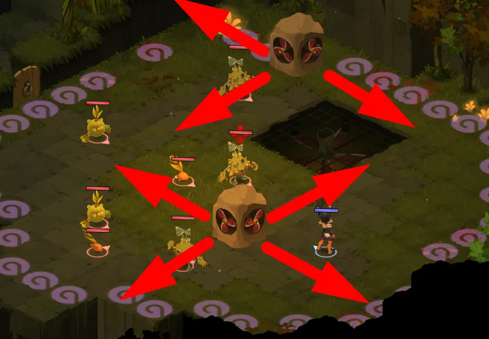 - Vous pouvez effectuer le retrait PA via un dégâts de collision, ceux-ci retirant des PA : ayez donc une équipe avec des persos qui retirent des PA ou qui effectuent facilement des sorts de poussés