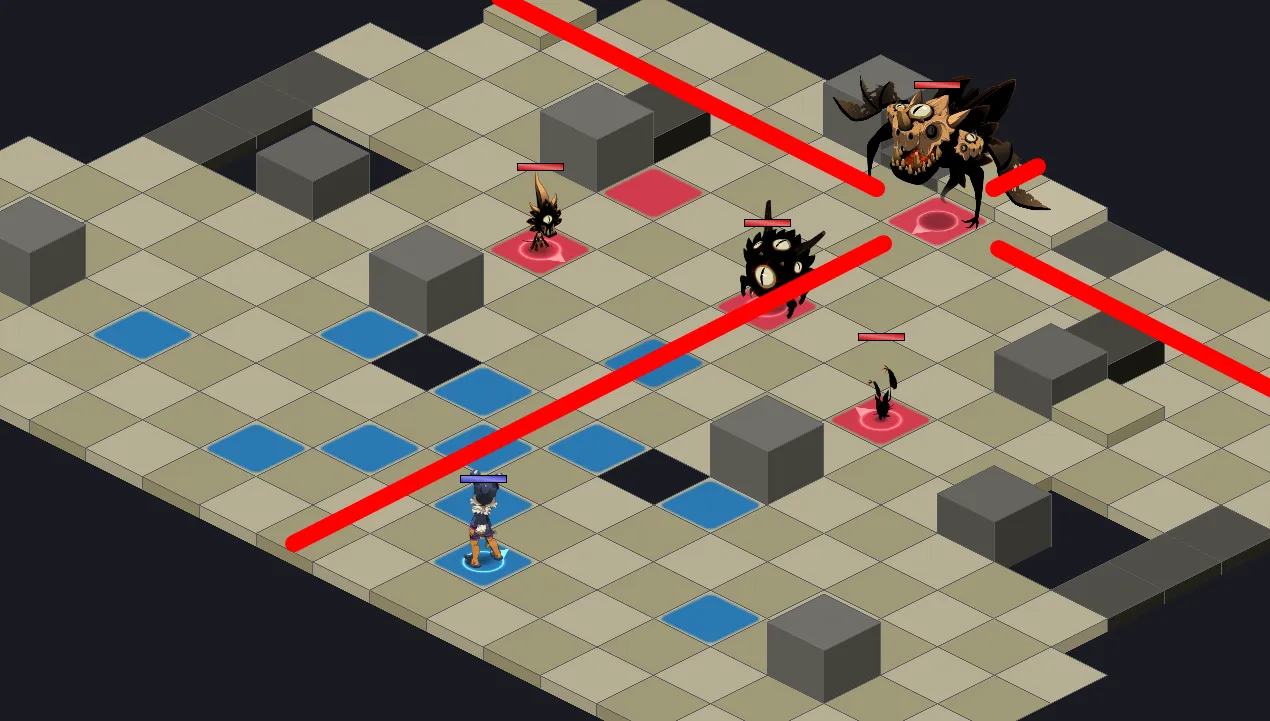 - Essayez d’éliminer rapidement les monstres un par un pour vous “libérer” un maximum de cases disponible (hors diago des monstres)