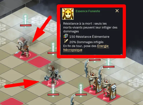 - Tous les ennemis du donjon ont l’état morts vivants : vous pouvez leur infliger des dégâts via des soins