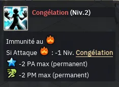 - Pour chaque niveau de congélation, vous perdez 1PA 1PM et 10% de dégâts (cumulable)