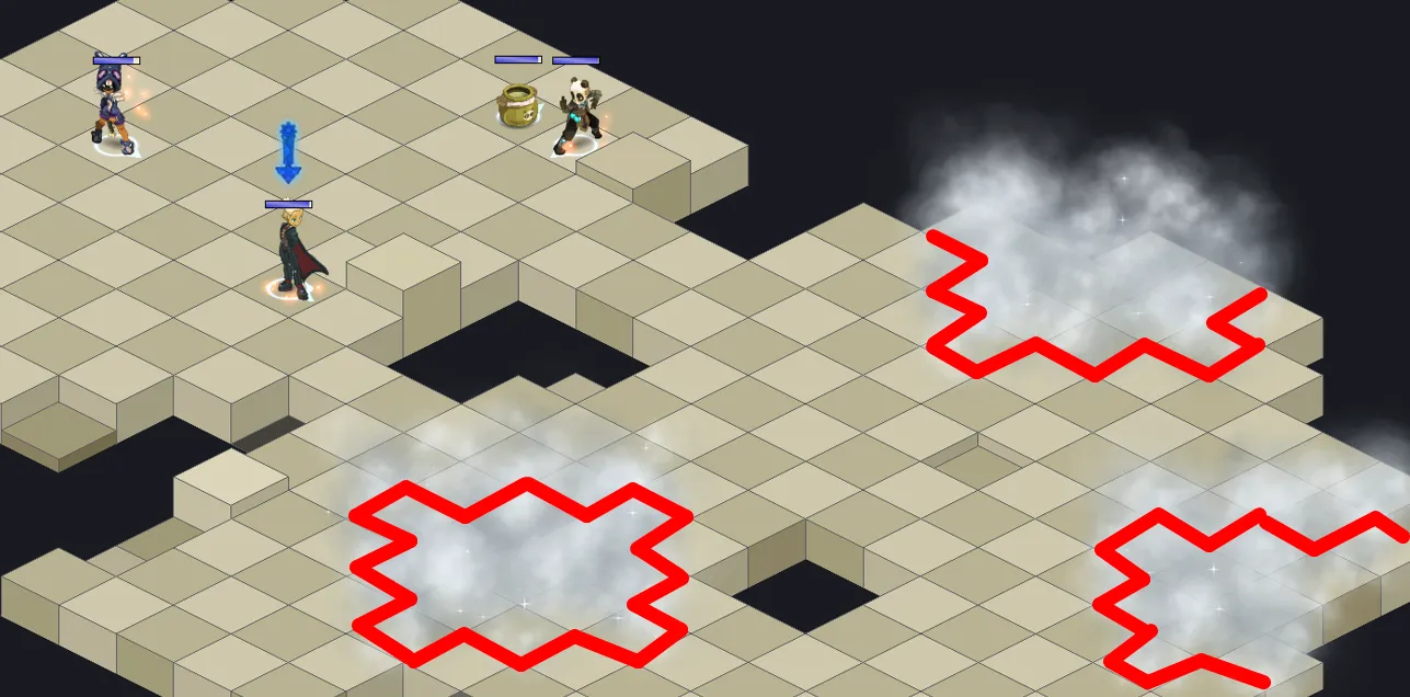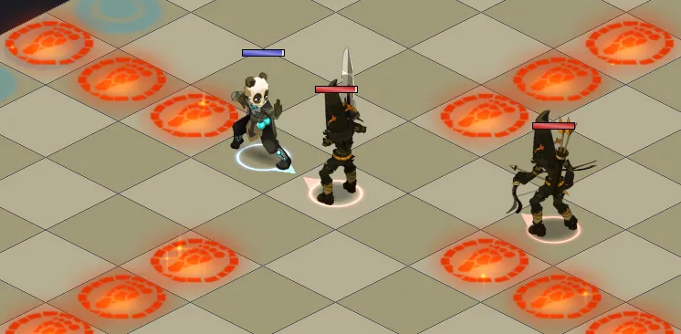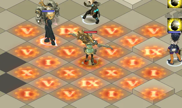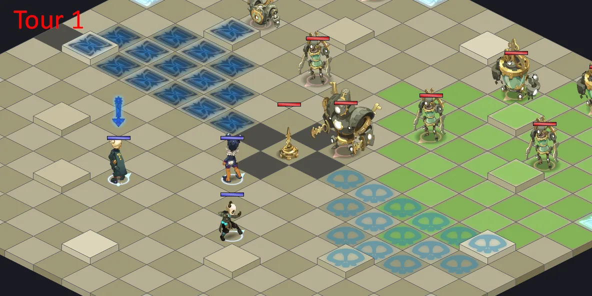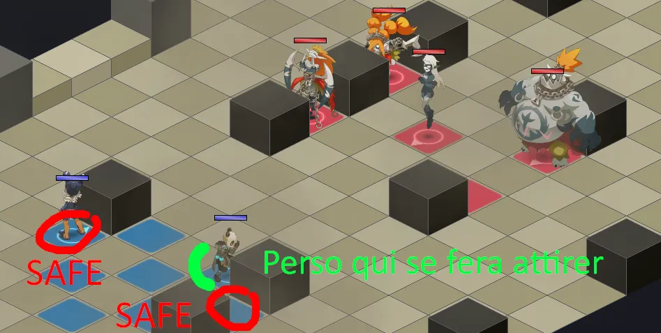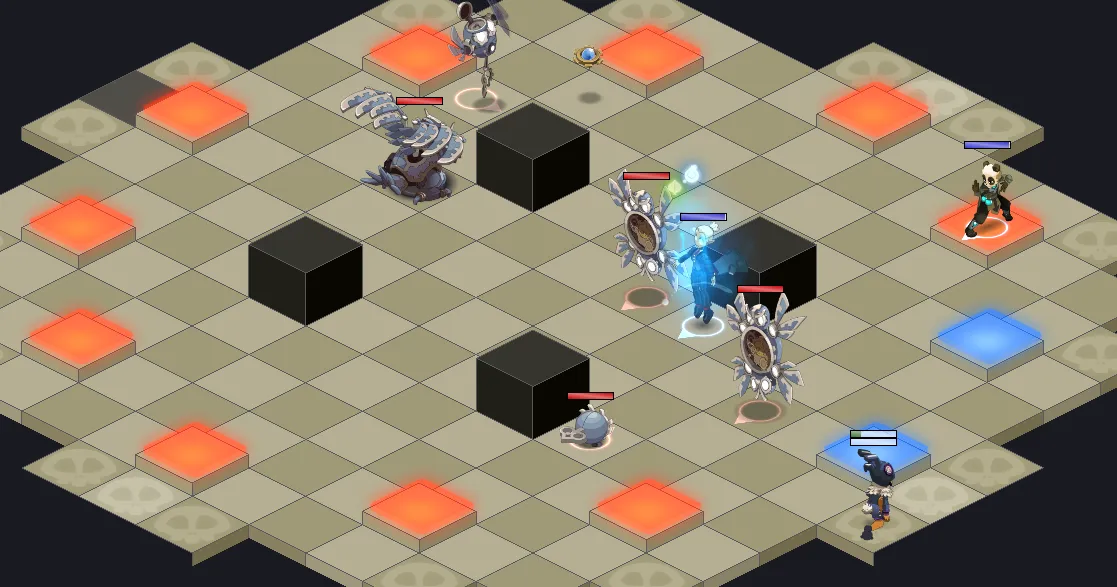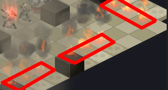 - La map possède en effet des cases de dégâts (25% de vos PV max) qu’il faudra éviter à tout prix (D’autant + qu’avec les stèles, de nouvelles cases vont apparaître et les cases de dégâts passeront en cases de One Shot)