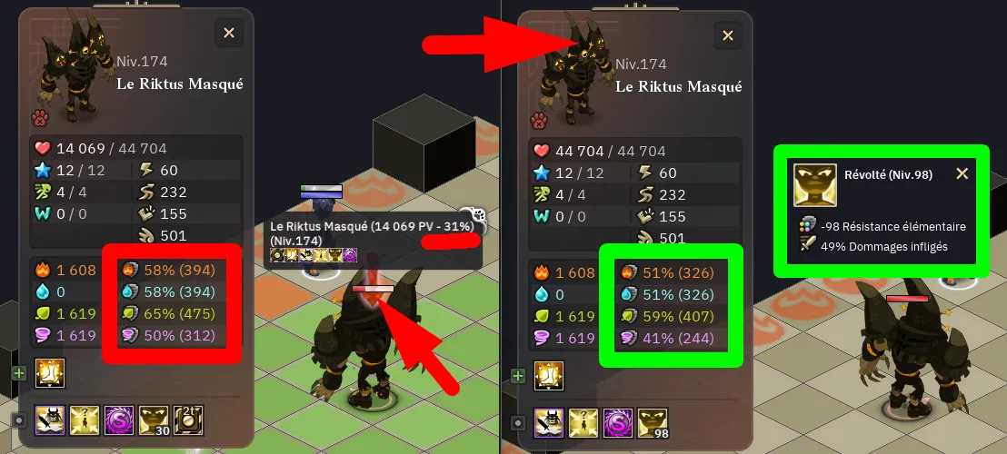 - Tous les monstres du donjon possède un bonus : Révolution Riktus, leur accordant un énorme bonus de résistances