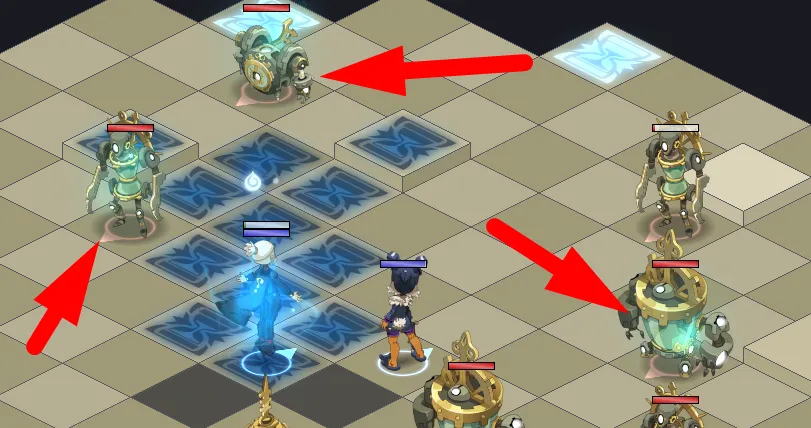 - Pour passer une case de bleu à rouge, il suffit de marcher dessus (avec un personnage ou une invocation)