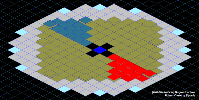 - La salle est entourée de cases “bleues”, il va falloir toutes les passer en “rouges” pour désactiver l’invulnérabilité du Boss