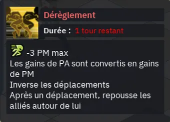 - Si l’un de vos personnages subis “Dérèglement”, il aura alors une aura rouge sous ses pieds et la plus importante des particularités sera l’inversion des déplacements