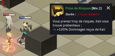 - Pour chaque personnage qui passe son tour au corps à corps de Kali, elle perdra 10 niveaux de l’état