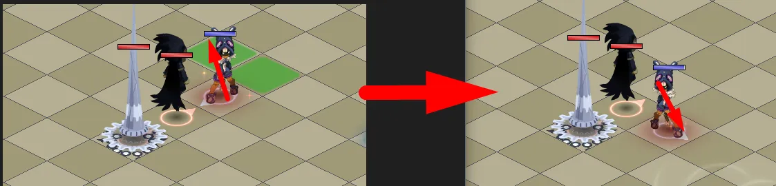 - Attention : pendant cette phase, si vous lancez un sort depuis une case rouge, la case se désactivera à nouveau