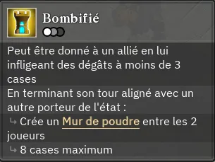 - Vous pouvez transmettre cet état en infligeant des dégâts (avec un personnage bombifié) sur un autre de vos alliés à 3 cases ou moins