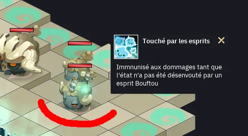 Il faut donc réussir à faire finir le boss sur des totems 3 fois pour pouvoir le tuer librement et facilement : N’hésitez pas à lui retirer des PM ou à le bloquer avec un personnage ayant beaucoup de tacle pour que ce soit plus simple qu’il termine son tour sur un totem, sinon entourez-le avec 4 personnages une fois qu’il est sur un totem