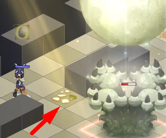 Au boss, une Giga lune est au milieu de la map : à chaque coup reçu, elle libère un fragment de lune aléatoirement sur la map