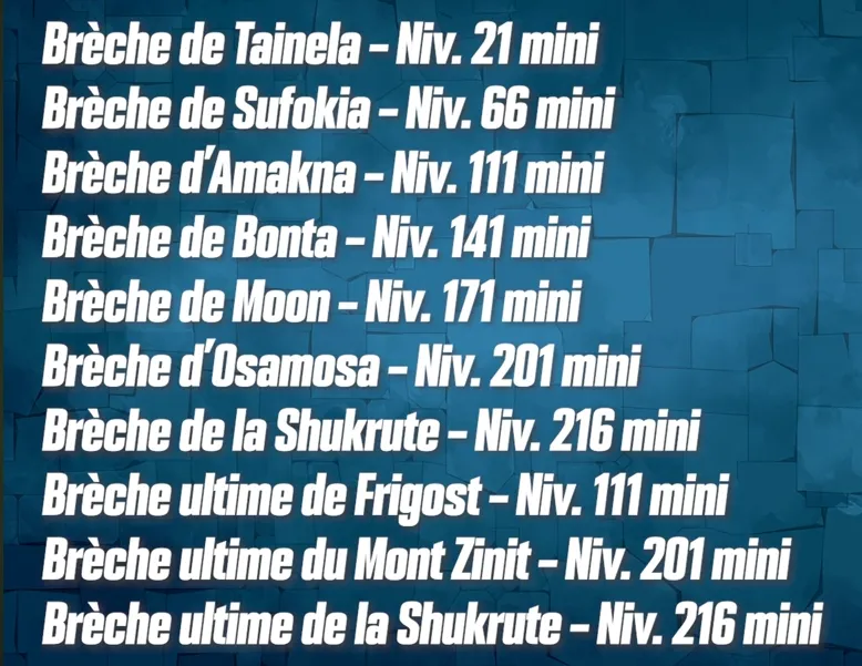 L’intérêt principal des brèches (en dehors de son apport en XP très intéressant) est le fait de pouvoir obtenir des familiers et sublimations exclusifs à chaque brèche.