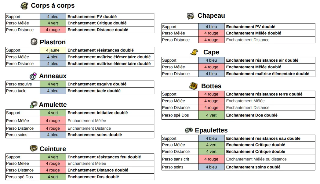 Par la suite, il est important de savoir quel item sera intéressant à enchanter et quelles sont les couleurs d’enchantement les plus intéressantes à la revente.