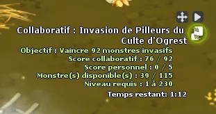 Chaque début de mois, Ogrest (Boss Ultime lvl 200) doit être affronté par un grand nombre d’équipes de joueurs pour lui infliger des dégâts et calmer sa colère. La totalité des dégâts des joueurs d’un serveur sont cumulés chaque mois jusqu’à qu’Ogrest soit calmé, une jauge que vous pouvez retrouver directement dans sa fiche de donjon :