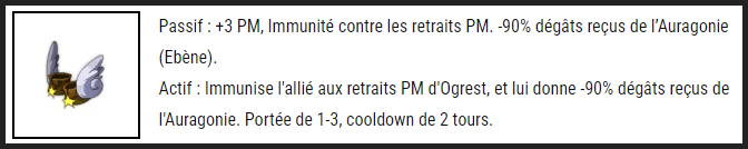 - Ajoutez un personnage support protection pour récupérer le SID (le faire jouer en dernier) et s’occuper du placement d’Ogrest. Son rôle en ébène sera de faire en sorte que Ogrest ne touche personne au cac. En Ocre il peut déplacer Ogrest près d’un rocher si besoin. Il doit un tour sur 2 remplacer le personnage mêlée au cac d’Ogrest pour éviter qu’il ne prenne trop de dégats. En ivoire, il peut aider au placement d’Ogrest pour optimiser les dégâts.